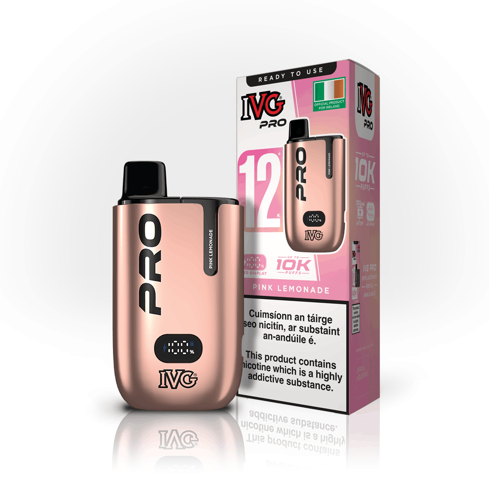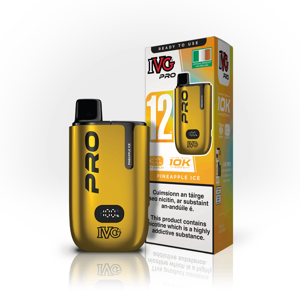Buy the IVG PRO, offering up to 10,000 smooth puffs in a sleek, reusable vape kit featuring a metallic finish and a digital battery display. Recharge and reuse with easy-insert prefilled pods—no refilling, no hassle.