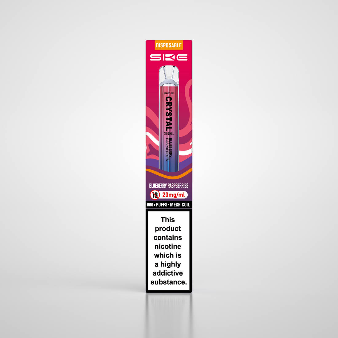 The SKE Crystal Bar 600 disposable vape is an exciting new kit from the SKE (Speed Skier Extreme) company that offers stiff competition to the many other models in this category on the market. Crystal Vape Kits are known for their beautiful, sleek, but slightly left-field idiosyncratic designs, which appeal to independent thinkers and those less prone to following the crowd.